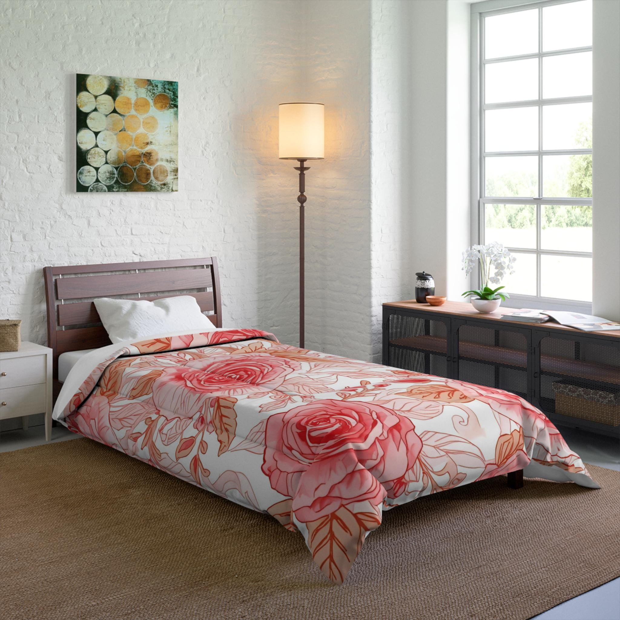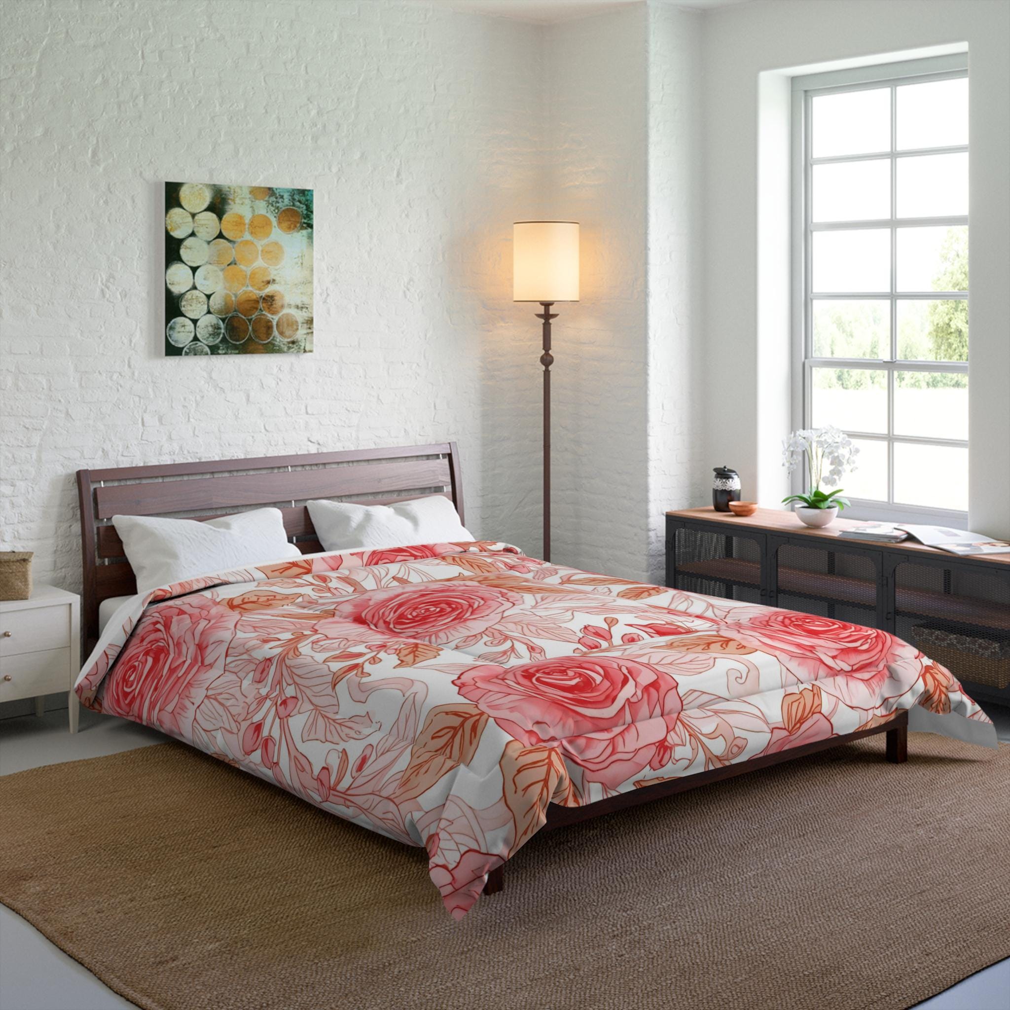 Transform your bedroom into a serene sanctuary with this elegant comforter. Adorned with delicate floral patterns, it radiates a calming and inviting vibe. Its lightweight design ensures cozy warmth without feeling bulky, making it perfect for year-round use. Ideal for anyone looking to refresh their home décor, this comforter is perfect for modern, romantic, or bohemian styles. Enjoy it during the springtime when blossoms bloom or snuggle up under it during cozy winter nights. This comforter makes an excellent gift for housewarmings, weddings, or any celebration where comfort and style are key.