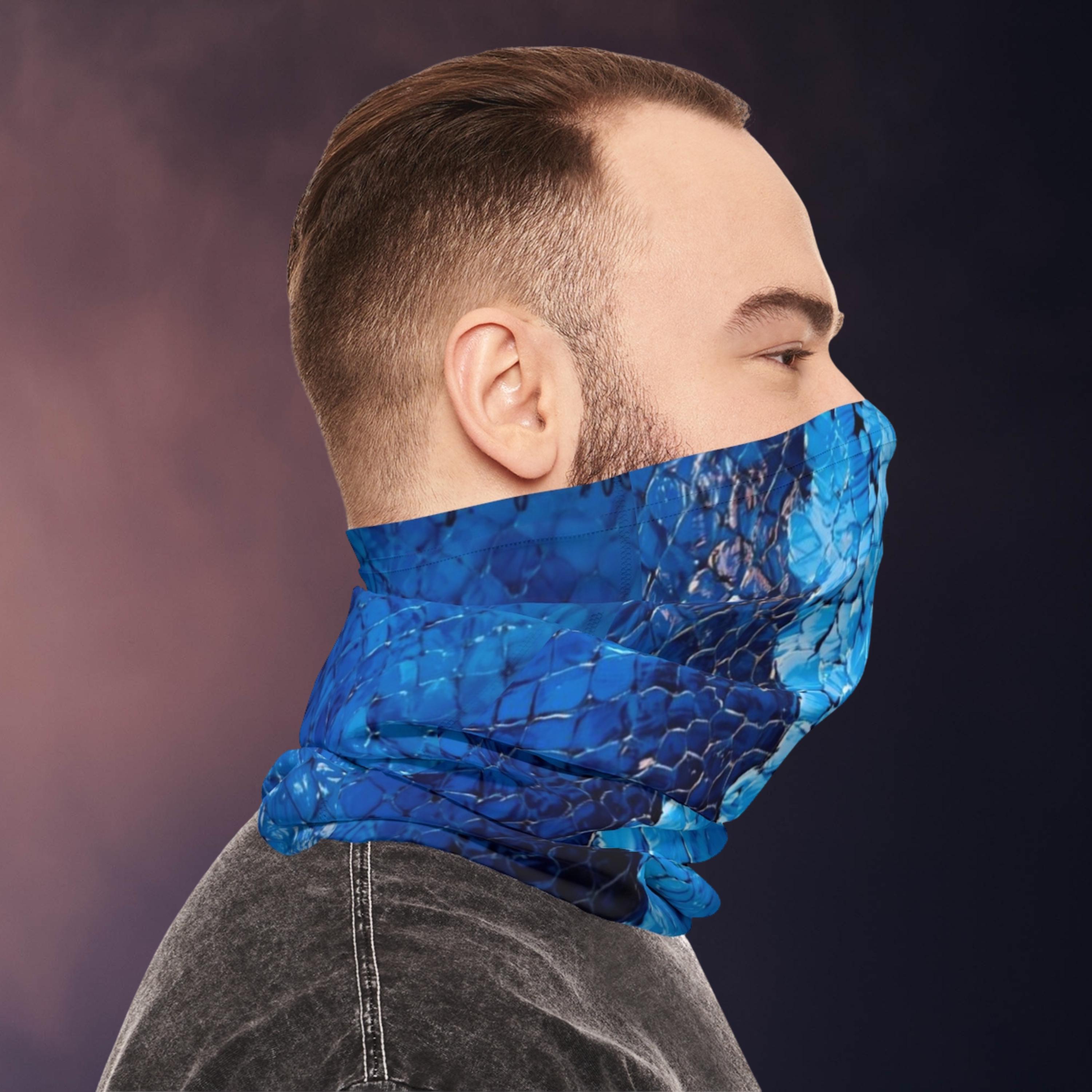 This lightweight neck gaiter carries a bold blue coral snake skin motif that catches the eye without shouting. Its smooth, breathable polyester hugs the skin gently, keeping sweat at bay while letting air circulate. Wear it pulled up over your nose during long, sunny hikes, or slide it down around your neck between waves of wind. The pattern reads adventurous and a little fierce — for people who choose trails that test them and beaches that reward them. It layers easily under a windbreaker, tucks into a life vest, and doubles as a headband or beanie when the light or temperature shifts. The white interior keeps the printed side crisp, while the UPF 50+ fabric shields skin when you’re out scouting tide pools, casting from a pier, or packing for a weekend of surf and sand.