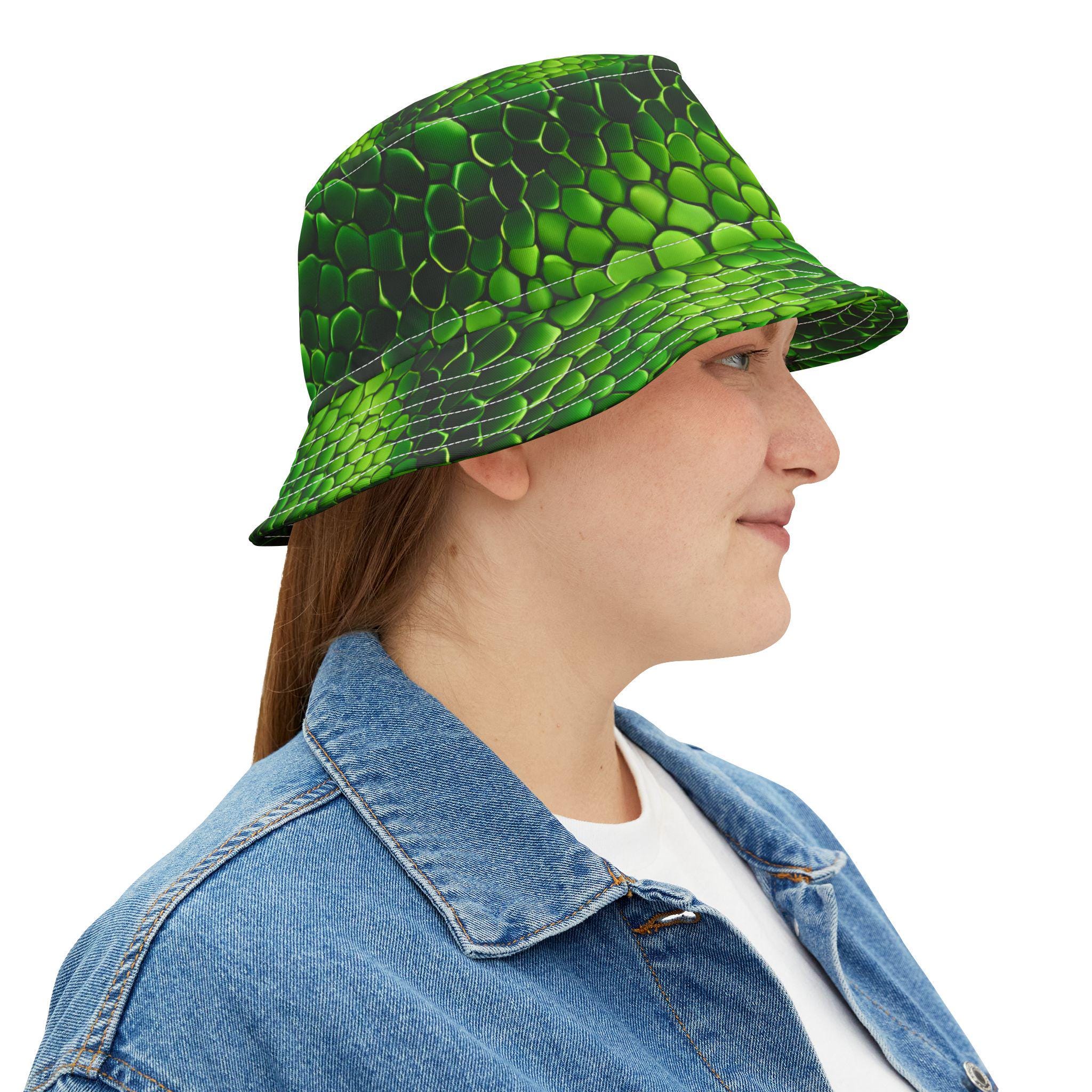 This vibrant green snakeskin-print bucket hat brings bold, adventurous energy to sunny days and festival nights. The textured scale pattern pops in rich emerald tones, catching light as you move and adding a touch of wild style to casual outfits. Lightweight and tough, the hat shields your face from the sun while keeping a breathable, sporty silhouette. Wear it on winding coastal walks, through crowded music fields, or while cruising the city — it adds attitude without trying too hard. The decorative stitching around the brim and crown gives a handcrafted feel, and the sewn-in label and American-made construction speak to lasting quality. Choose your size and stitching color to make it yours; it’s a simple way to stand out and stay comfortable wherever you go.